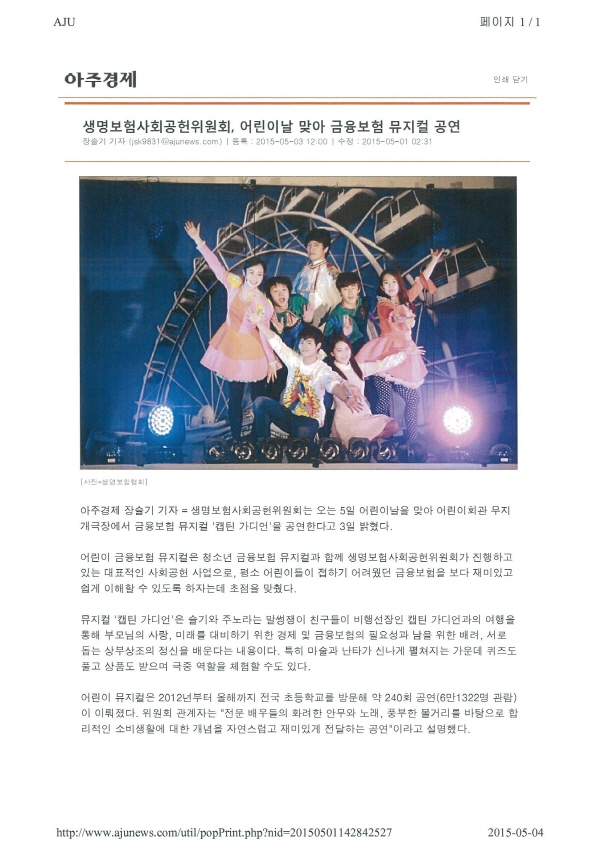 생명보험사회공헌위원회, 어린이날 맞아 금융보험 뮤지컬 공연